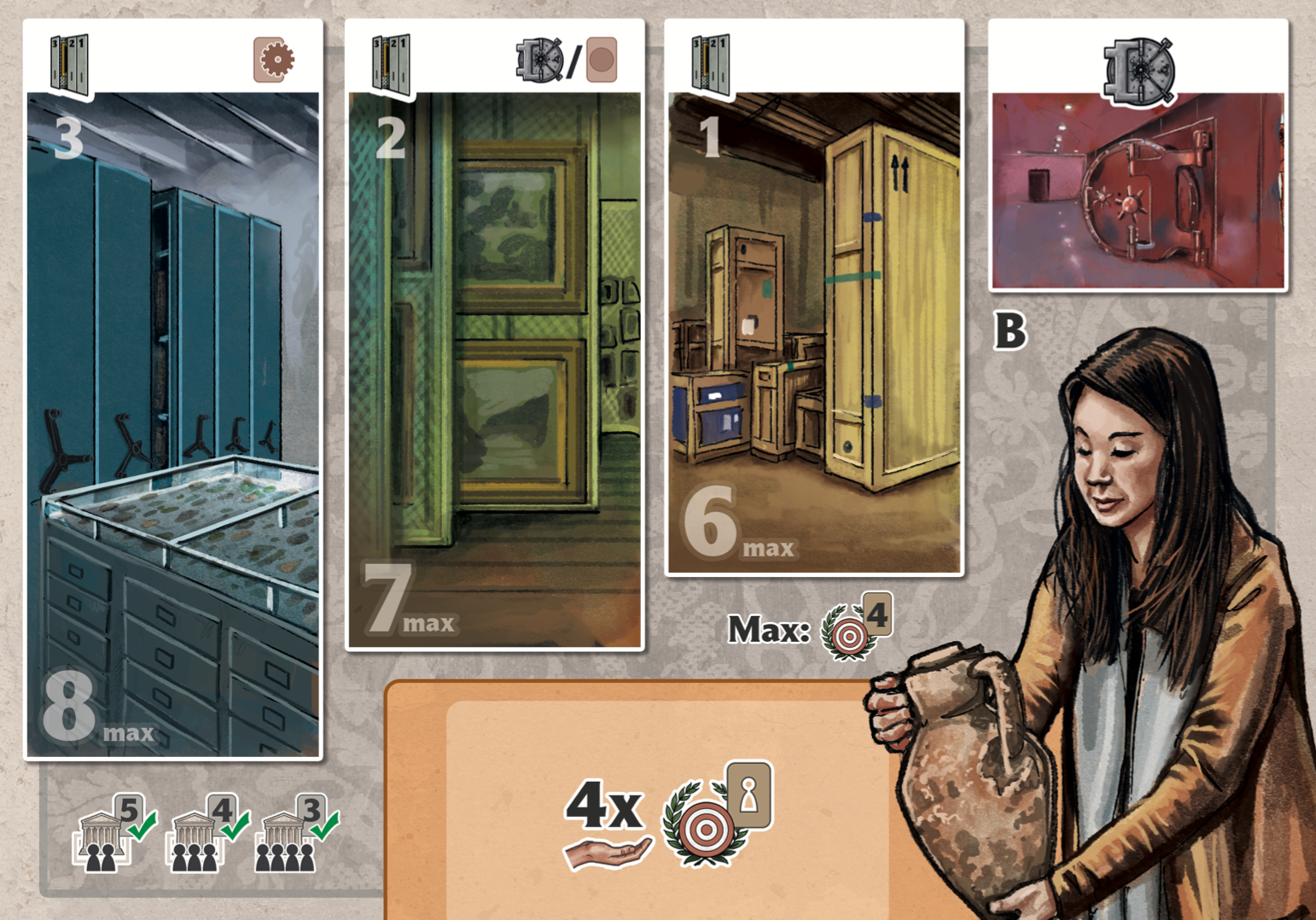 An alternate player board for the board game Antiques. The specialist can hold 4 private goal cards instead of the standard 3 private goal cards.